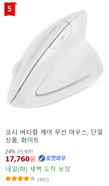 그 중 저는 가격이 가장 저렴한 코시 버티컬 컴피 무선 마우스를 구매하게 되었습니다.
