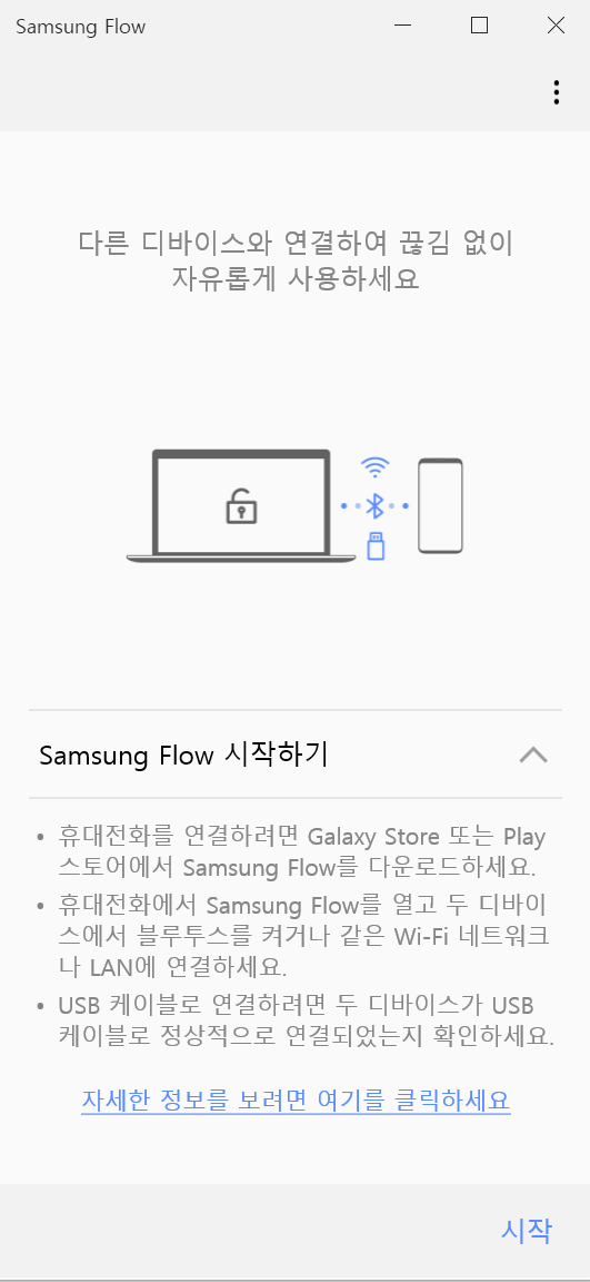 설치 후 스마트폰의 삼성 플로우 먼저 실행을 시킵니다.