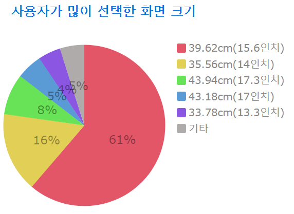 17인치 이상은 데스크탑 대용이나 하이엔드급 게이밍 노트북이 주를 이루고 있습니다.