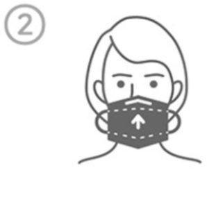 호흡기와 맞닿은 면체가 오염되지 않았는지 확인한다. 코편이 부착된 쪽을 위로하여 잡고 코와 입을 가리도록 착용한다. 귀걸이 끈을 귀에 걸어 위치를 고정시킨다. 틈이 없는지 확인하여 안면에 완전히 밀착되도록 한다.