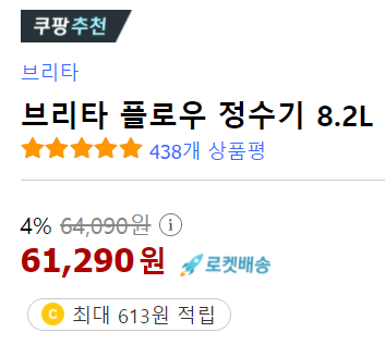 집에서 생수를 사 먹다가 페트병 분리배출도 귀찮고 정수기를 알아보던 중에 브리타 정수기 추천받아 알게 되었어요.