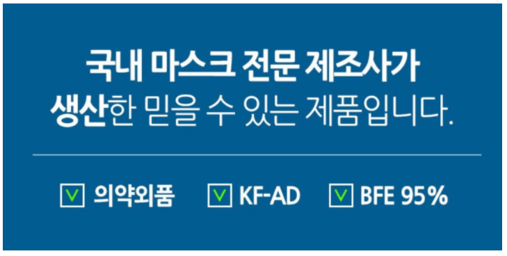 일상생활에서 비말을 통한 감염을 예방하기 위한 목적으로 사용하는 식약처 허가 의약외품 마스크입니다.