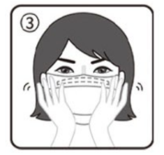 STEP. 3 양 손으로 마스크 전체를 감싸고 공기누설을 체크하면서 안면에 밀착되도록 조정한다. |