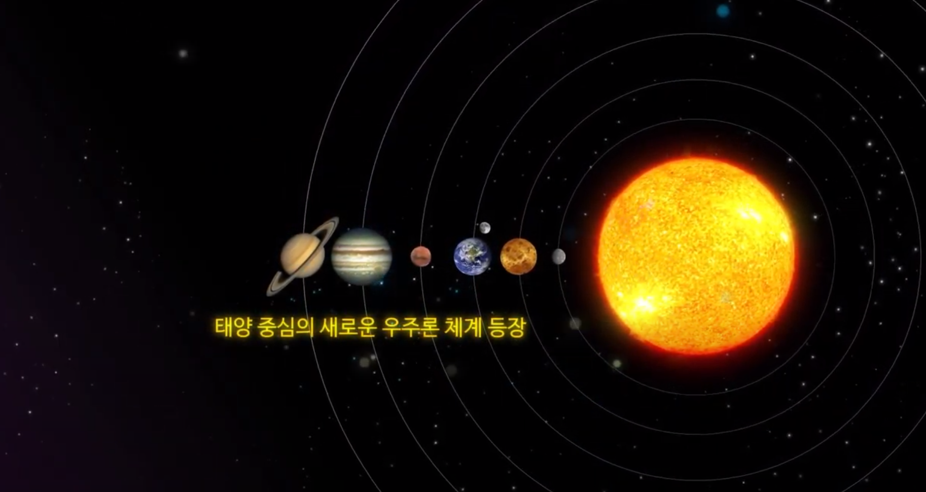 이로써 천동설 천문학이 끝이 나고태양 중심의 새로운 우주론 체계가 등장하게 되었습니다.
