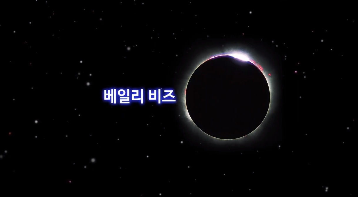베일리는 개기일식의 최후 순간 태양이 전 가려지기 직전 가장자리 보석 같은 작은 구슬들이 연결되어 불꽃처럼 영롱하게 빛나는 현상에 주목했습니다.