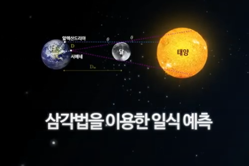 이러한 히파르코스의 측량 술은 달에까지 미쳤습니다. 그는 간단한 기법으로 달까지의 거리를 구했는데 바로 시차가 그 방법이었습니다.