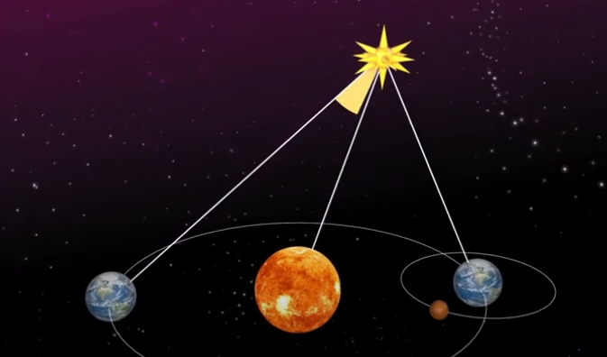 한 물체를 거리가 떨어진 두 지점에서 바라보면 시차가 발생합니다. 눈앞에 연필을 놓고 오른쪽 눈 왼쪽 눈으로 번갈아 보면 위치 변화가 나타나듯이 말이죠.