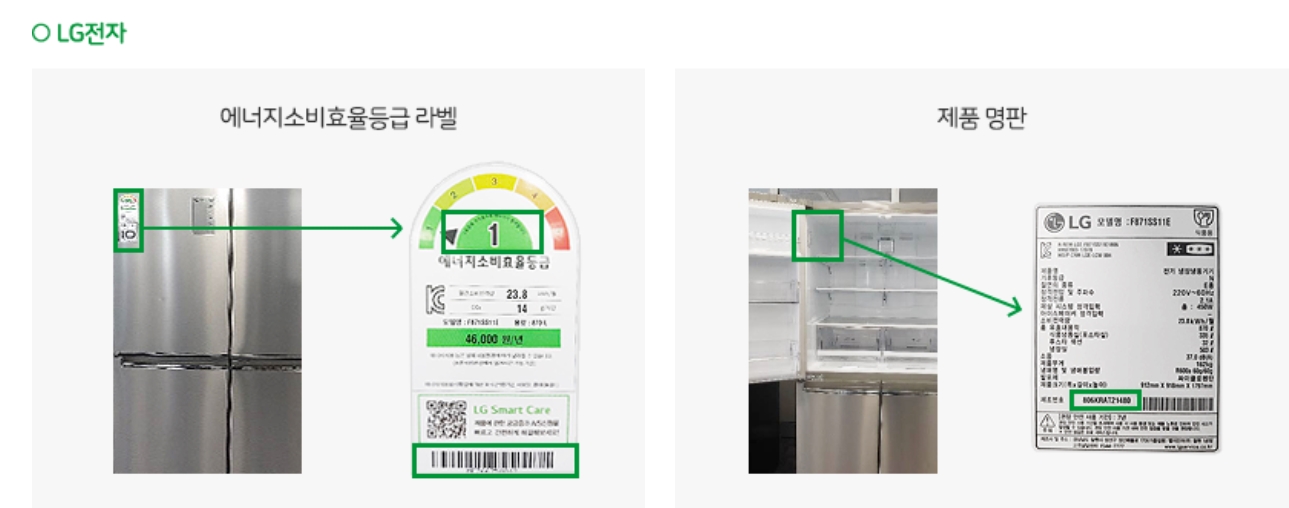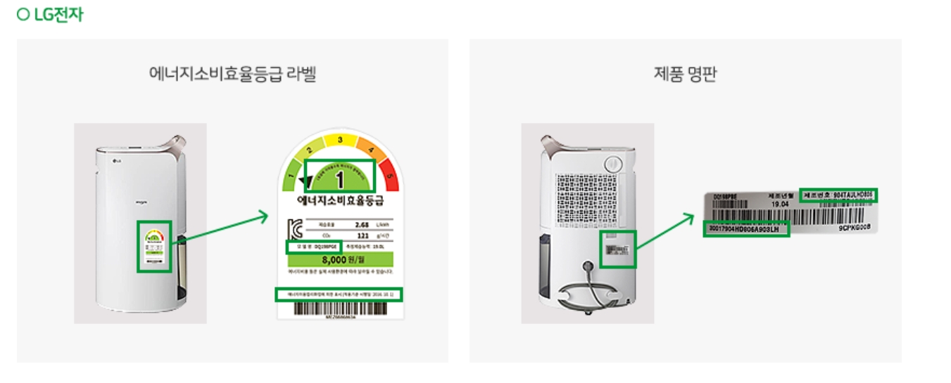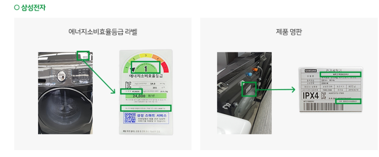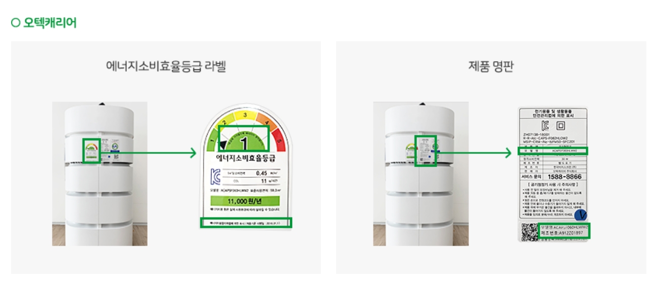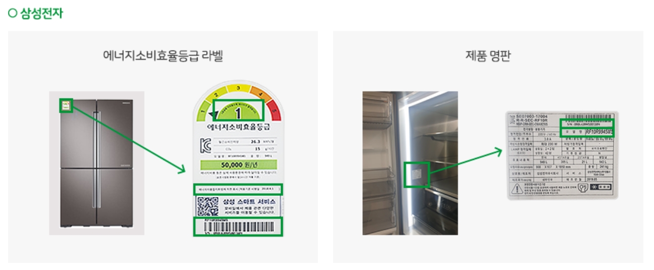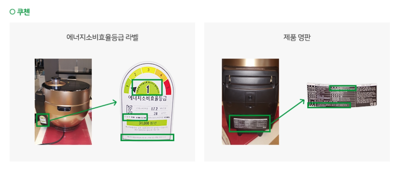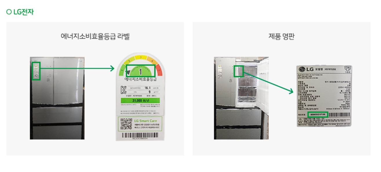 | 효율등급라벨 사진 : 모델명, 등급, 적용기준 시행일자 | 구매제품 | ||