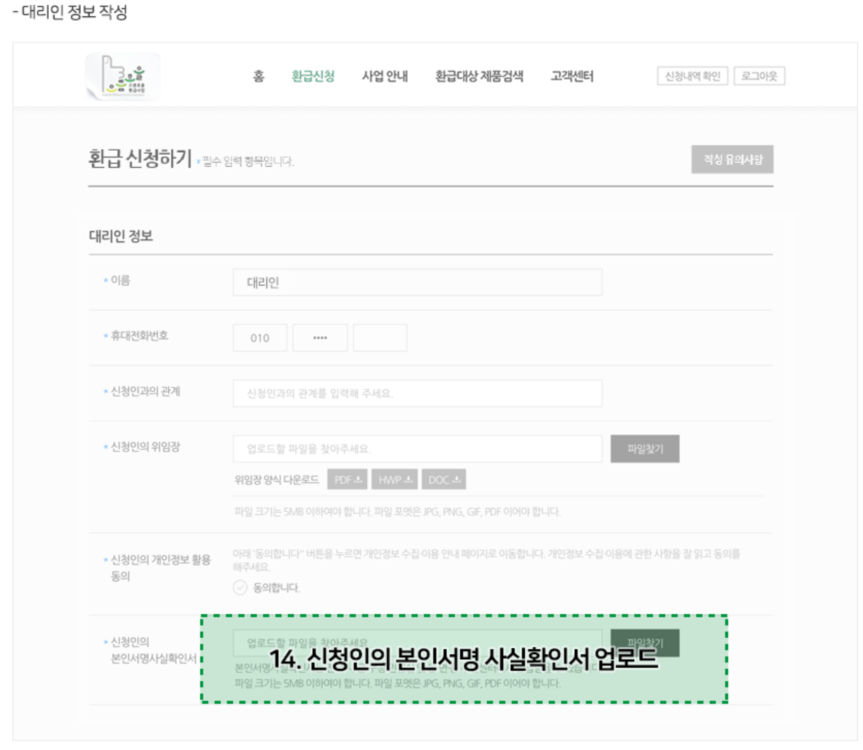 대리인 신청