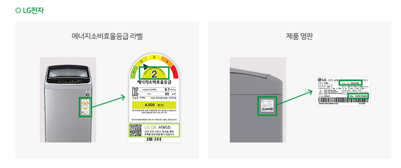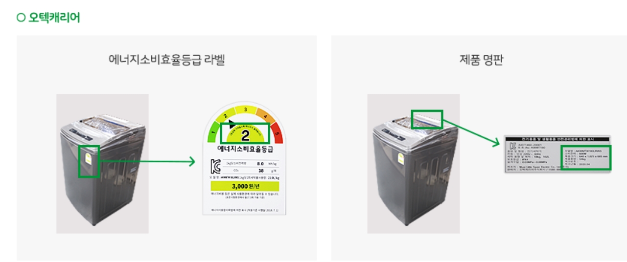 효율등급 라벨 및 명판위치 확인