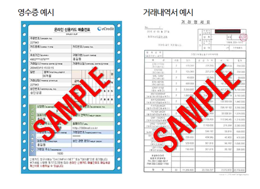 | 결제영수증 : 거래금액, 거래일시, 승인번호, 사업자번호 | |||