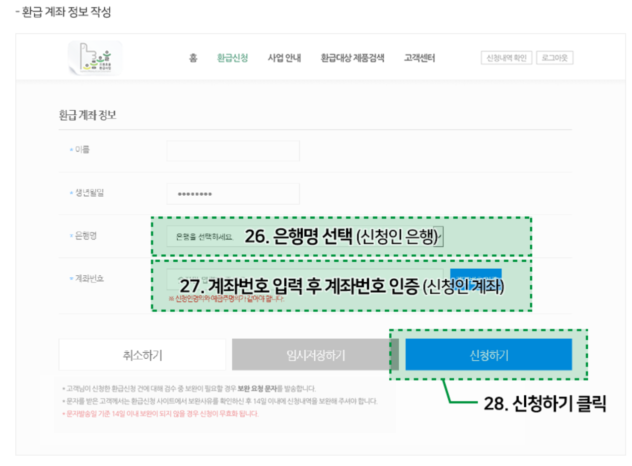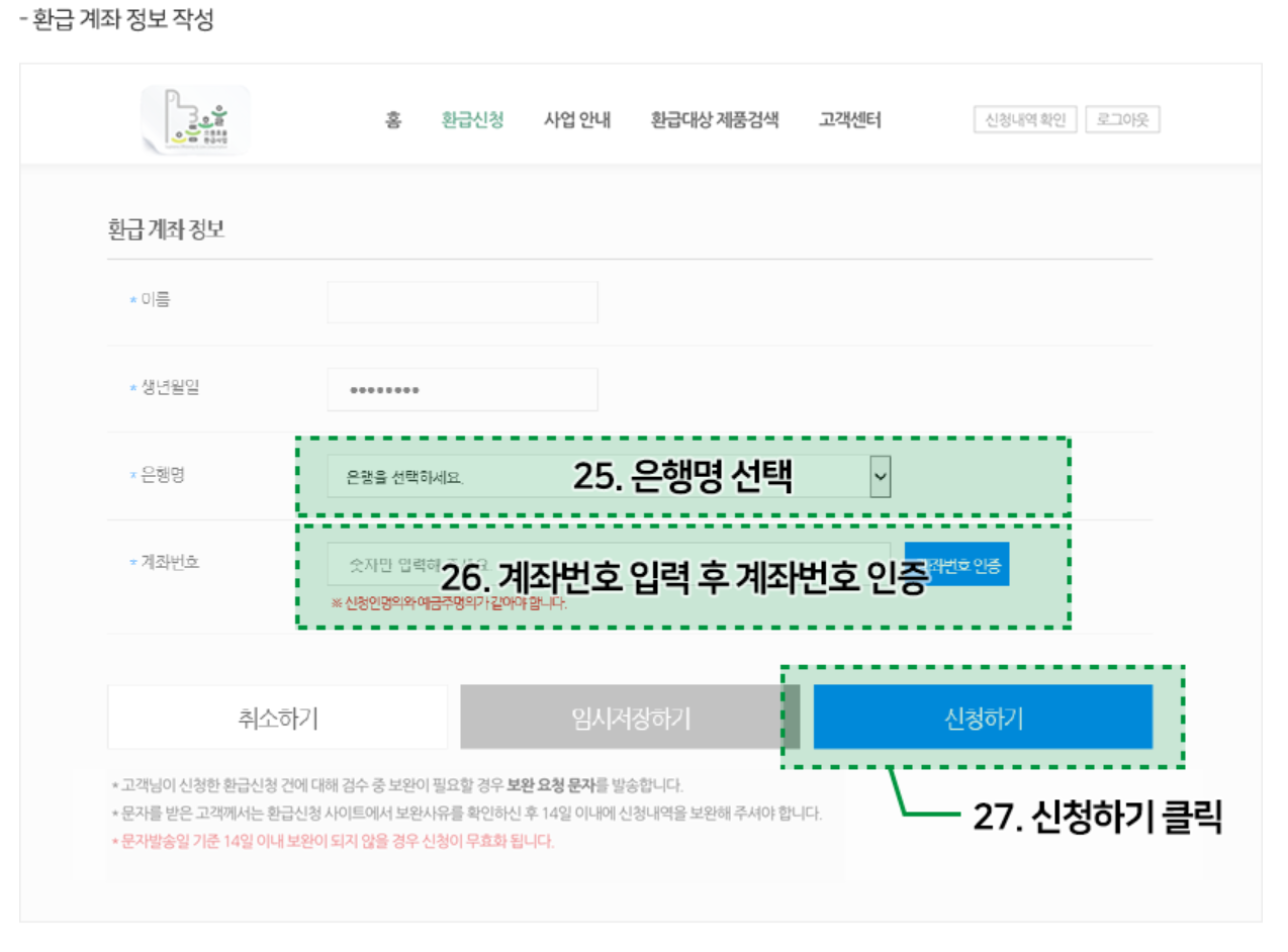 | 환급계좌 | 신청인 = 예금주 |