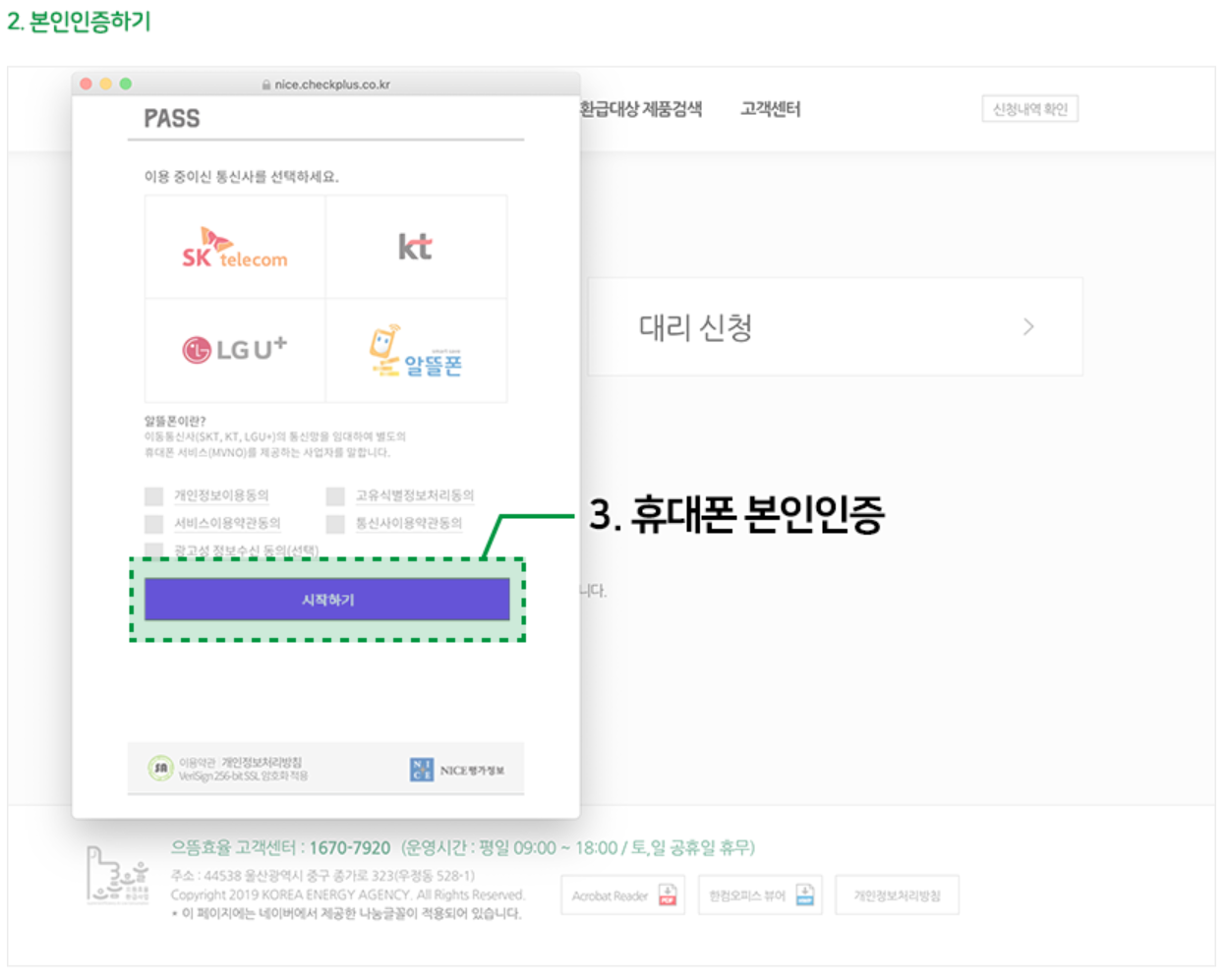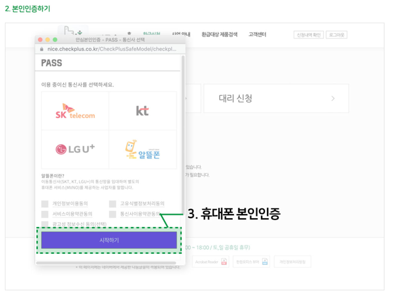| 1단계 | 1. 휴대폰 인증 2. 성명, 주소 등 필요 정보 입력 |