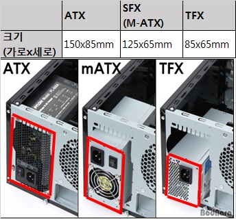 ATX, M-ATX, TFX, UPS 등이 있습니다.