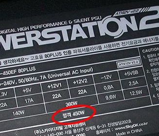 *일반적으로 파워의 제품명에는 출력량이 들어가는 경우가 많다는 점을 악용하여, 제품명에 정격출력과 관계없는 숫자를 적어놓는 경우가 있습니다.