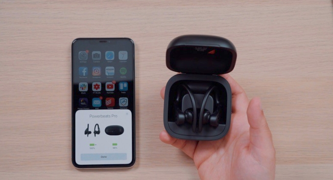 파워비츠 프로에는 애플의 H1 칩이 장착되어 있기 때문에 잠금 해제된 iOS 기기와 가까운 곳에서 케이스를 열기만 하면 되며, 기기의 화면에 이어폰 연결을 위한 팝업이 빠르게 나타납니다.