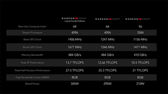 라데온 RX 베가 64는 공랭 쿨러를 탑재한 일반 레퍼런스와 한정판으로 나뉘고 일체형 수냉 쿨러를 탑재한 한정판의 3가지 버전으로 시장에 출시됩니다.