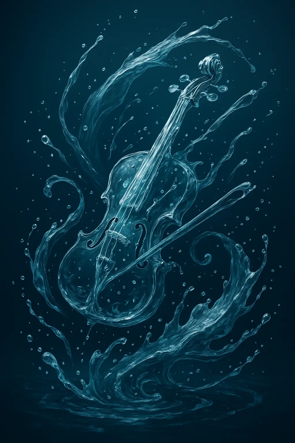 프롬프트: “물로 만들어진 바이올린의 소리를 표현한 이미지.