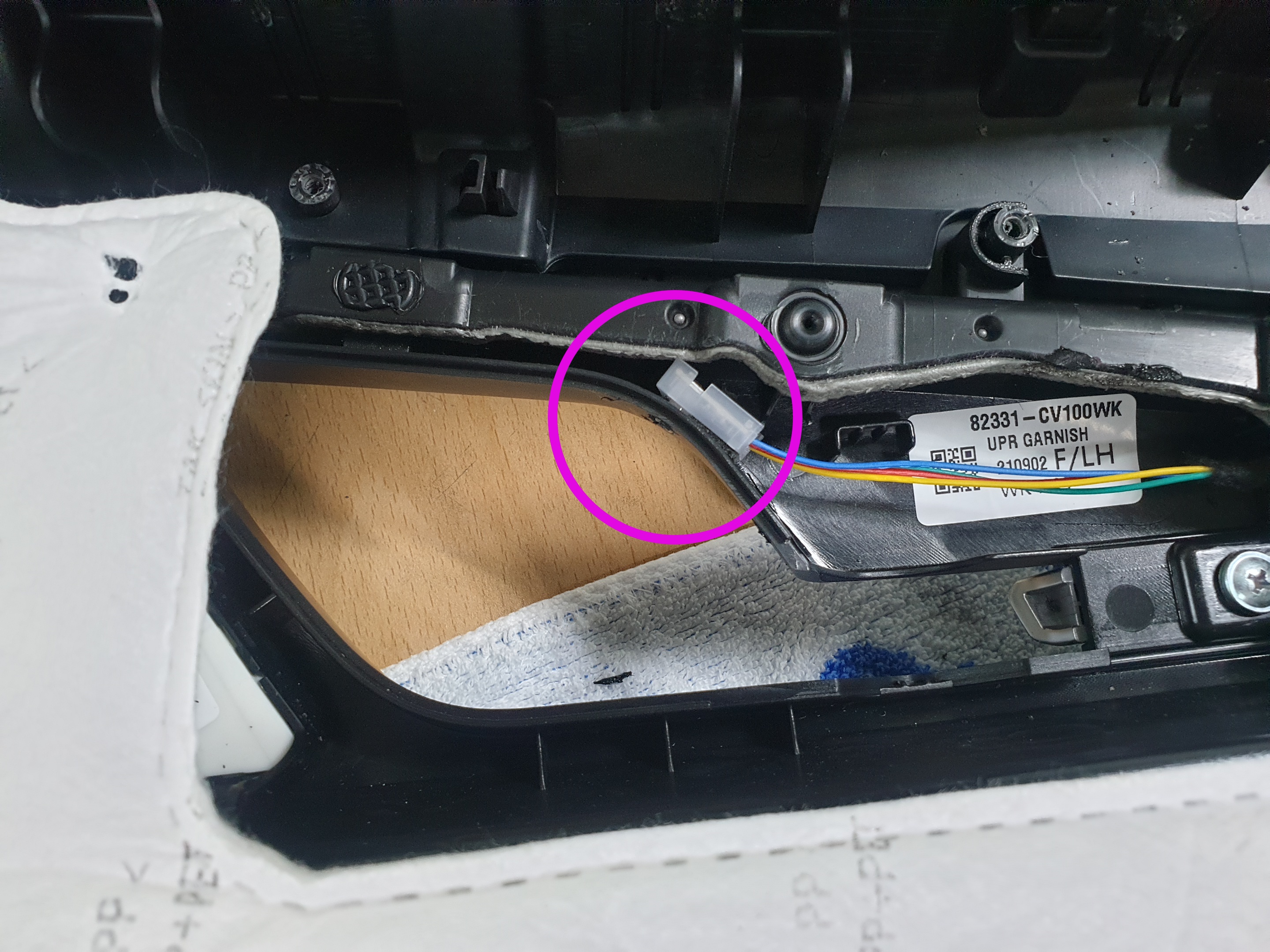 다음은 조수석 쪽 대시보드 라이트 설치를 위한 작업입니다.