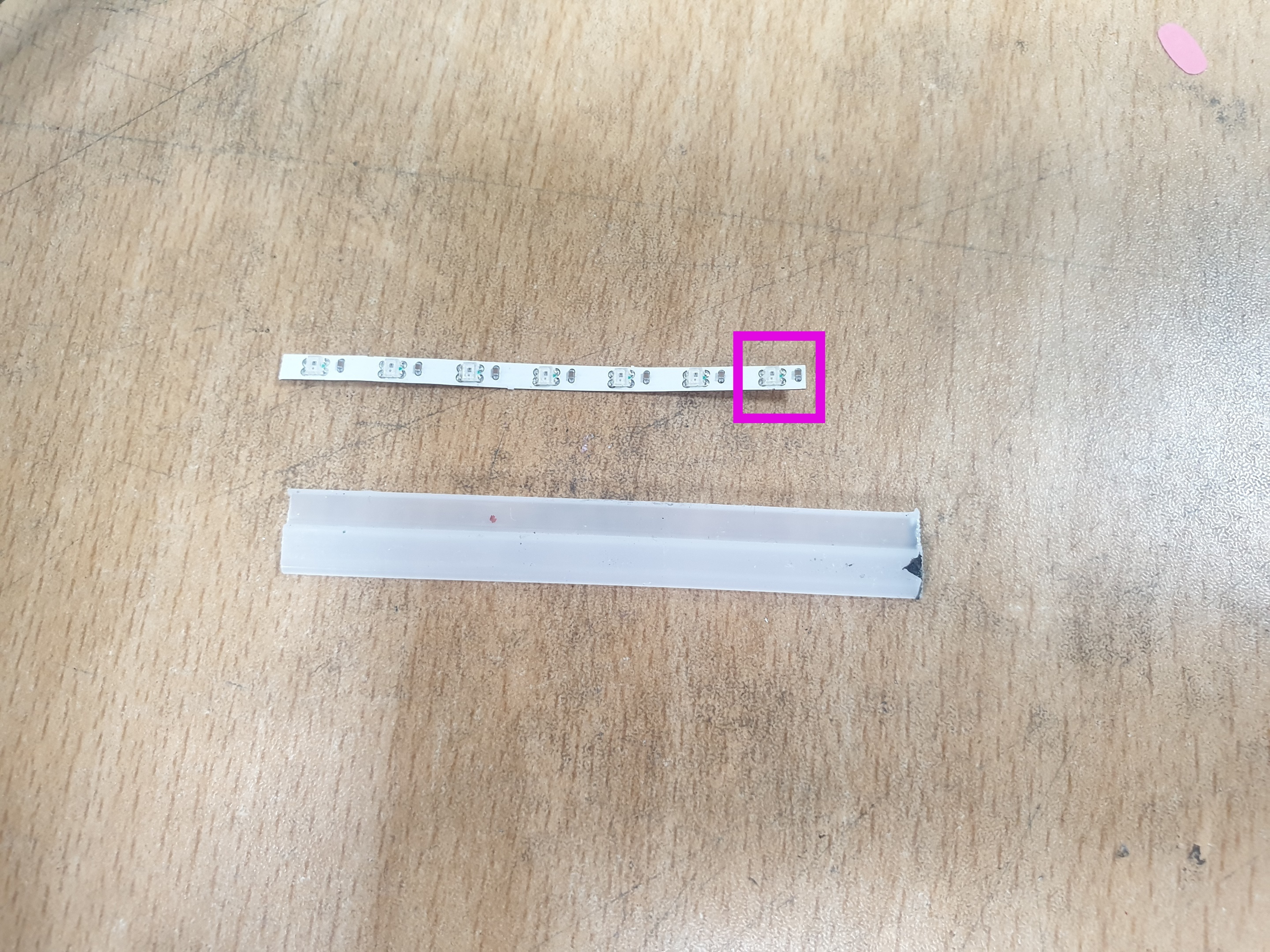 설치하는 곳에 맞게 스트립을 잘라 주어야 하는데, 위 사진처럼 검은색 테이프를 벗겨보면 LED 소자가 나옵니다. 네모 하나가 한 개의 단위 같습니다. 저 중간을 잘라주면 됩니다.