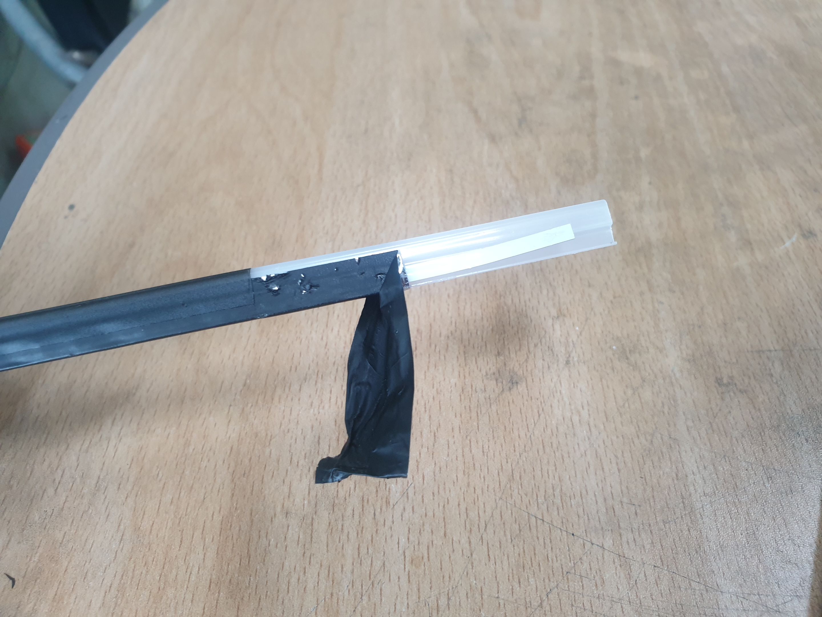 송풍구 끝단에 맞추어 스트립을 고정했습니다. 전선 있는 부분이 왼쪽으로 가도록 고정하였습니다.
